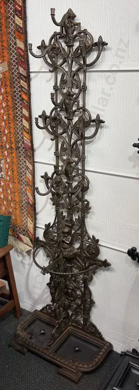 Elaborate Cast Iron Umbrella and Coat Rack Stand, H197xW66xD31cm