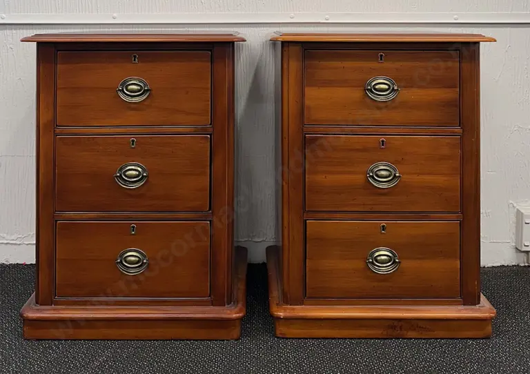 Rimu Three Drawer Bedside Tables with Brass Pulls H70xW54xD40cm