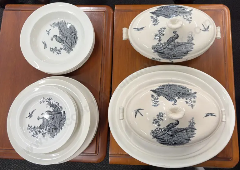 Wedgwood Black Pheasant Dinner Set, 29 pieces - dinner plates, soup bowls, ashets & entree dishes
