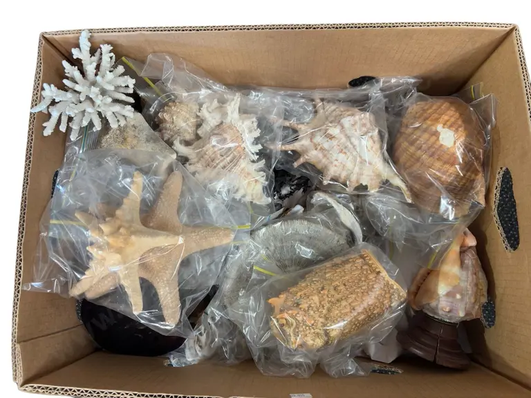 Tortoiseshell L38cm and box of Assorted Coral, Shells etc