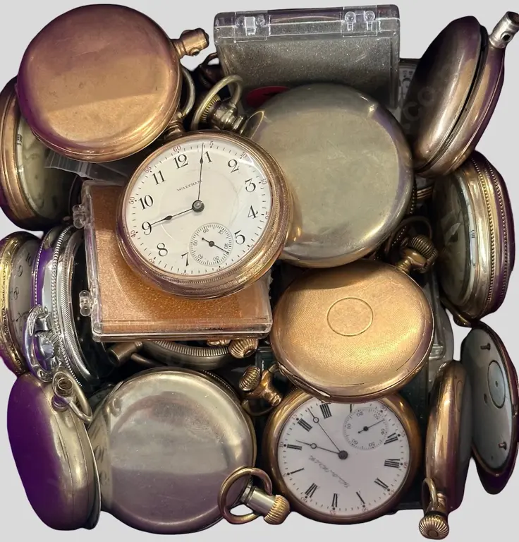 Quantity of Assorted Gold Plated and Silver Pocket Watches, varying condition Estimate: $300 - $600