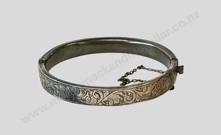 Egyptian Sterling Silver Cuff Bangle and Silver Pendant TW37gms (bangle only) Estimate: $50 - $150