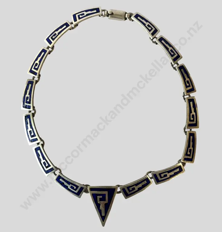Sterling Silver and Blue Enamel graduated Necklace, L48cm, TW 96.2gms Estimate: $75 - $150