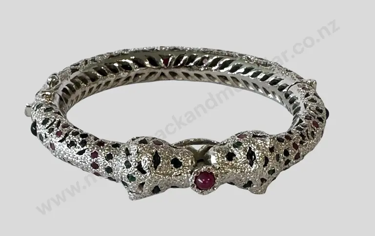 Silver Leopard Bangle set with Gemstones TW59.9gms Estimate: $100 - $200