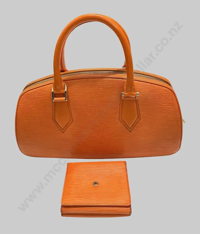 Louis Vuitton Orange Epi Leather Jasmine Bag and Matching Wallet H19xL32cm Estimate: $200 - $400
