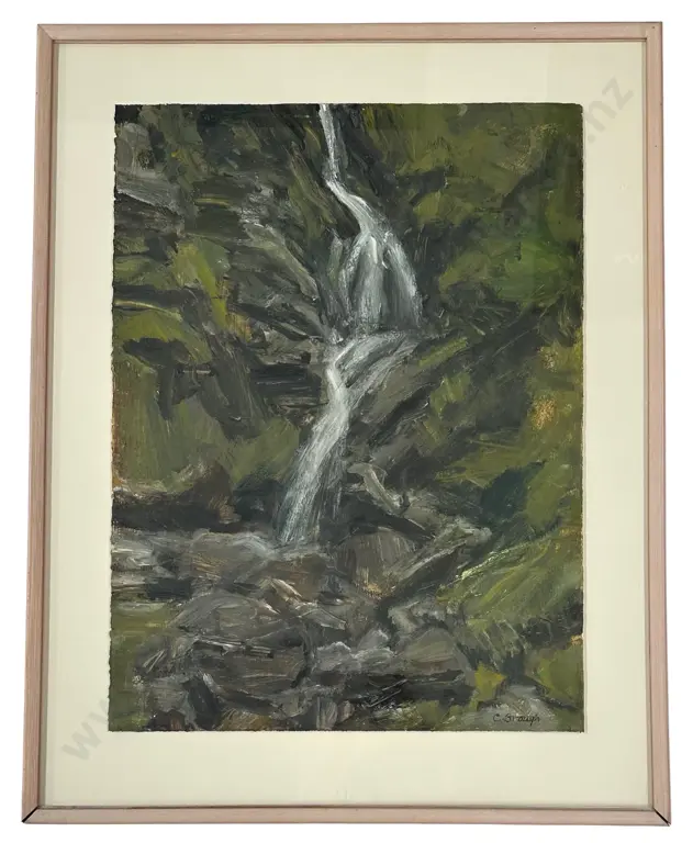 Catherine Brough - Waterfall in Sunlight, oil on board, 770x558mm
