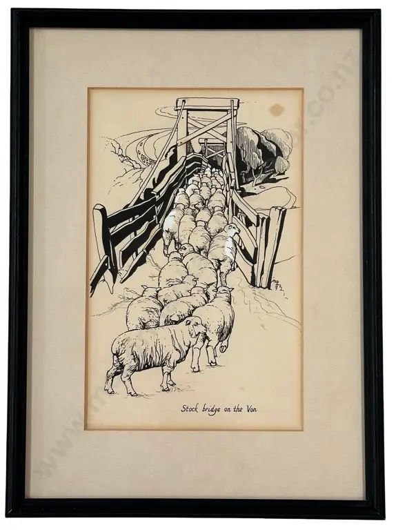 Colin Wheeler - Mt Nicholas, Stock Bridge on the Von, pen and ink on paper, 215x135mm