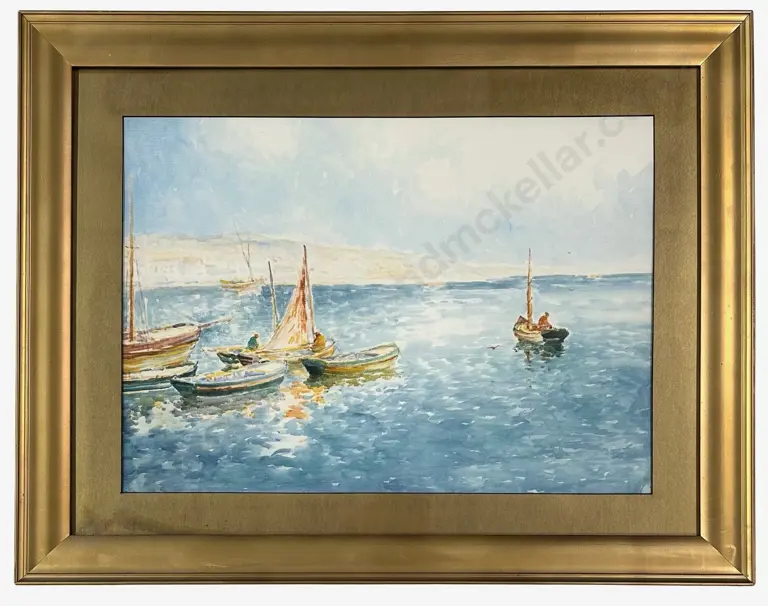Unsigned - Tunny Boats, gouache on canvas, 390x540mm