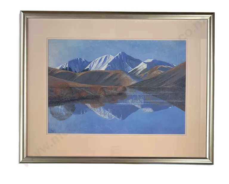 Ann Wilson – Mountain and Lake Scene, pastel on paper, 360x540mm