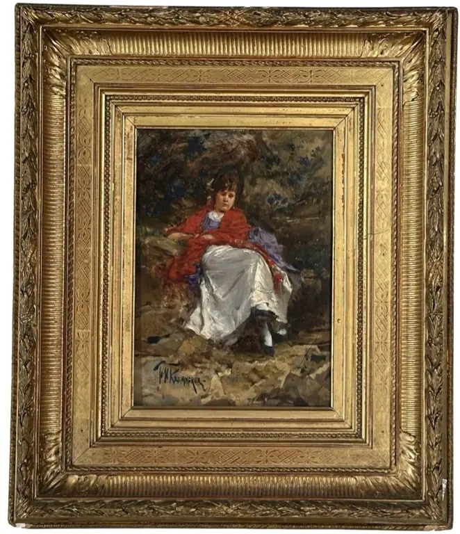 F.H Kaemmerer - Woman with a Red Shawl, oil on board, 270x190mm