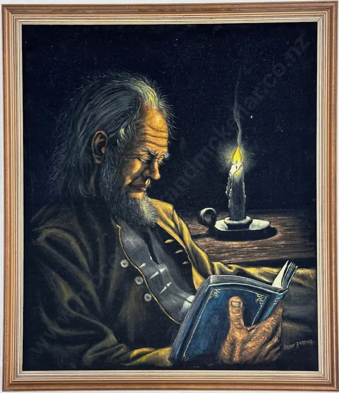 Brent Redding - Reading by Candlelight, mixed media on velvet, 725x620mm