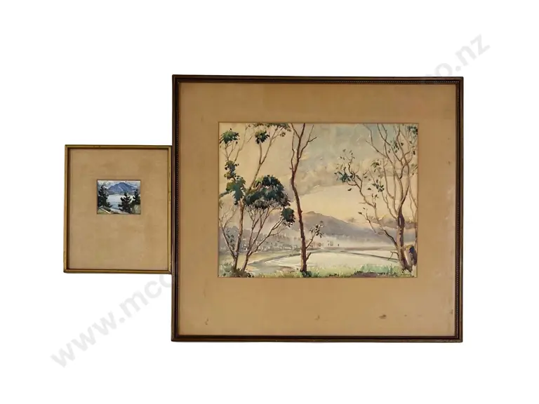 Kathleen Salmond - Afternoon Light, Dunedin from Anderson Bay, watercolour on paper, 290x370mm & Kathleen Salmond