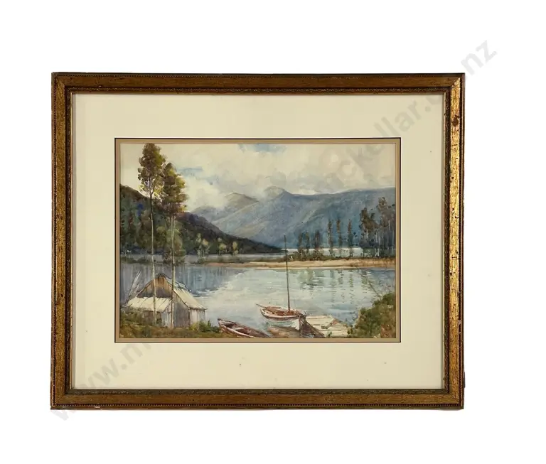 R Herdman-Smith - The Boathouse, Lake Brunner, watercolour on paper, 250x350mm