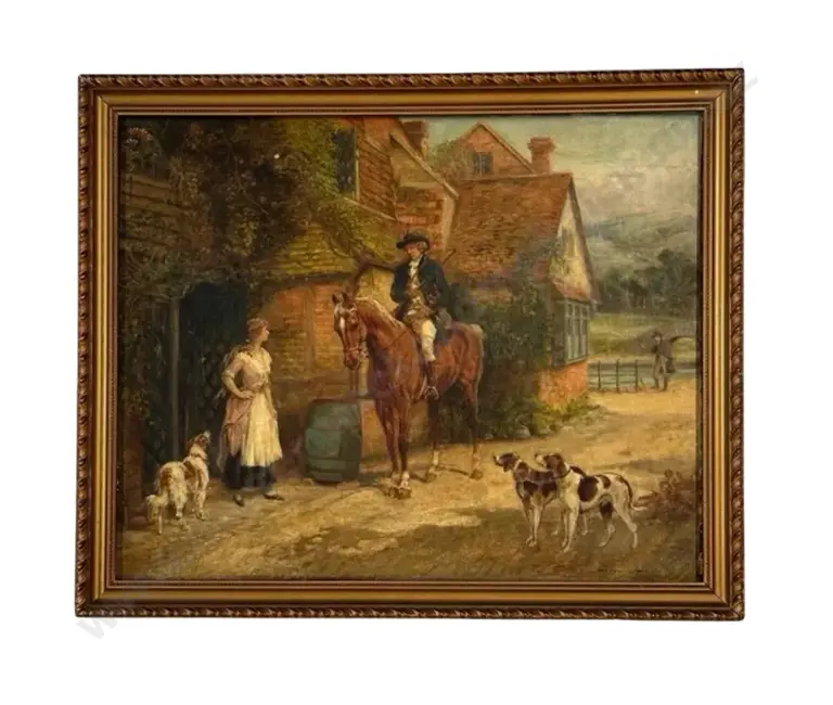 After Heywood Hardy - Horseman and his Hounds, oil on board, 400x495