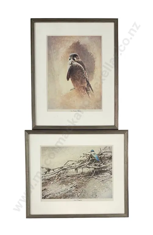 Raymond Ching Prints (2) - Sacred Kingfisher & NZ Falcon, 250x325mm, 335x245mm