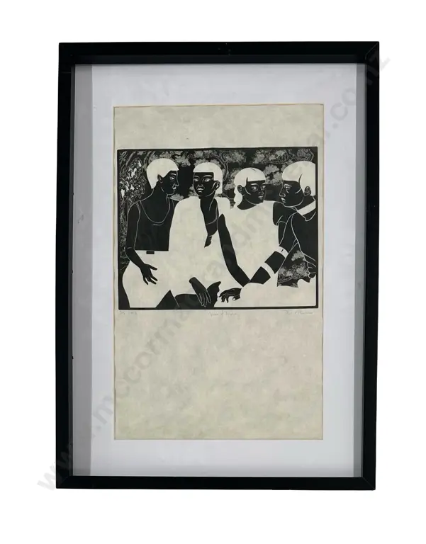 T Ooleicop - Untitled, woven textiles on white board, 430x378mm, L Watson - Untitled, 2012, vinyl lino, 310x280mm