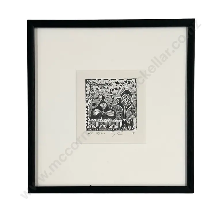 Christiane Shortal - Found Object #1, 2020, acrylic and ink on paper, 180x148mm, Durk - Untitled, 9/10 screenprint