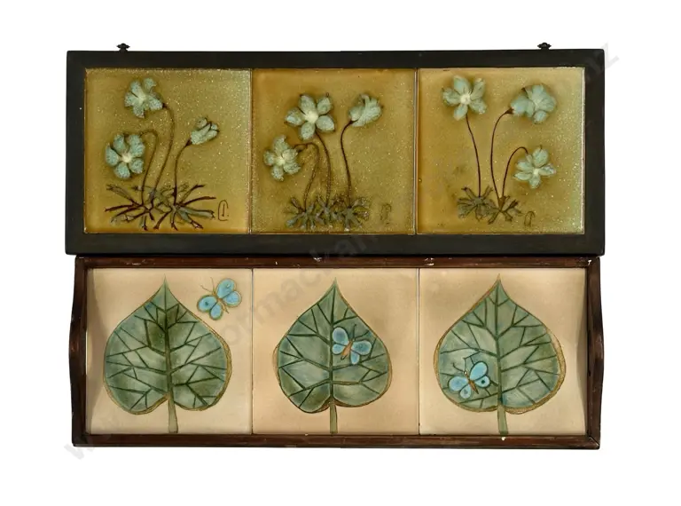 Gennie de Lange Tiled Plaques & Tray - Social Butterflies, Trees & Purple Fruit, 200x500mm, 480x160mm, 450x170mm one A/F
