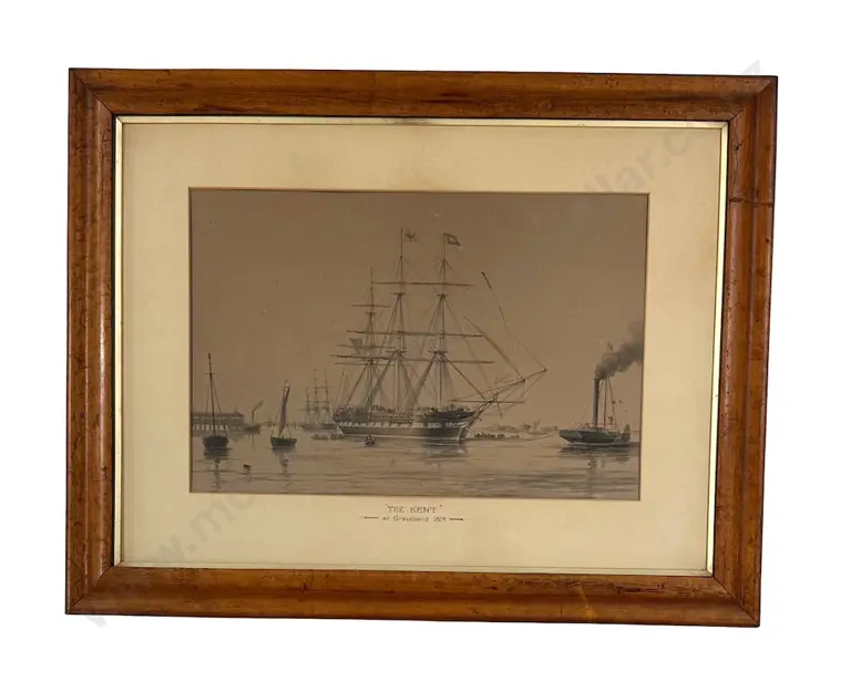 The Kent at Gravesend 1854 Print in Birdseye Maple Frame 295x445mm