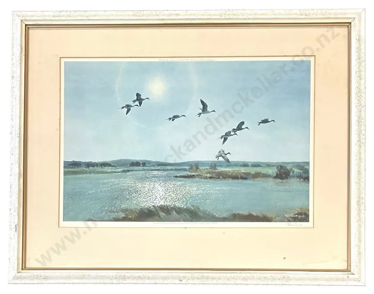 Peter Scott (hand signed) - Wigeon Ducks landing on Water, 1949, print, 375x560mm
