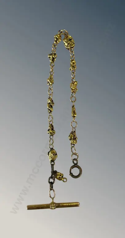 Gold, Gold Nugget and Brass Watch Chain (Redbank Farm now McCrae's Gold Mine) L23.5cm, TW23.4gms Estimate: $2,000 - $3,500