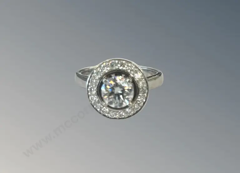Platinum Diamond Cluster Ring with Moissanite Centre Stone, Size L, TW10gms Estimate: $500 - $1,000