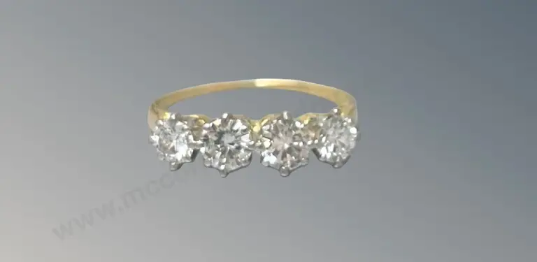 18ct Yellow and White Gold 4 Stone Diamond Ring, 1.01ct, Size M, TW2.53gms, Valuation $7700 Estimate: $1,750 - $3,000
