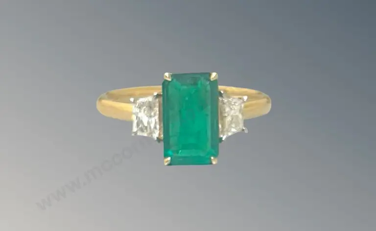 18ct Gold Emerald and Diamond 3 Stone Ring, 1.89ct, Size P, TW3.62gms, Valuation $16900 Estimate: $5,000 - $7,000