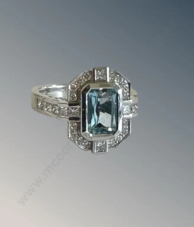 18ct White Gold Diamond and Aquamarine Cluster Ring, TGW1.38ct, Size O, Valuation $11860 Estimate: $3,000 - $4,500