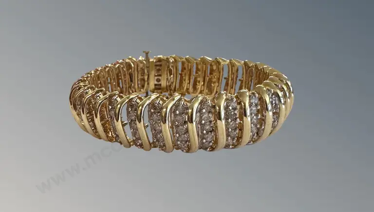 10ct Gold Diamond Bracelet with articulated links, TDW9.6ct, TW40.7gms, Valuation $18000 Estimate: $4,500 - $6,000