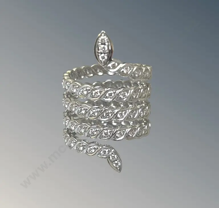 18ct White Gold Diamond Snake Dress Ring, 1.29ct, Size 0, TW13.79gms, Valuation $16400 Estimate: $5,700 - $7,500