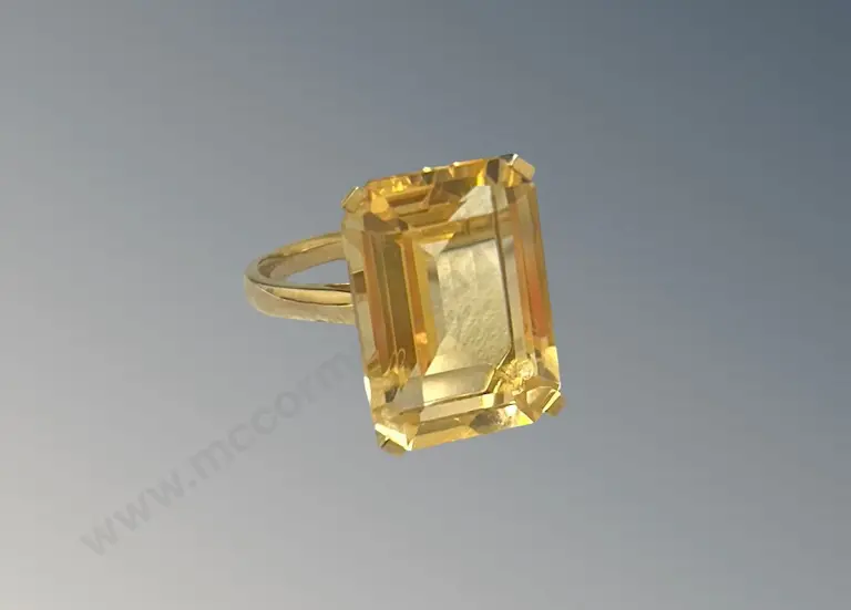 9ct Yellow Gold Citrine Cocktail Ring, 13.88ct, Size P, TW6gms, Valuation $3450 Estimate: $850 - $1,200