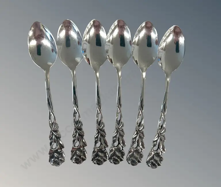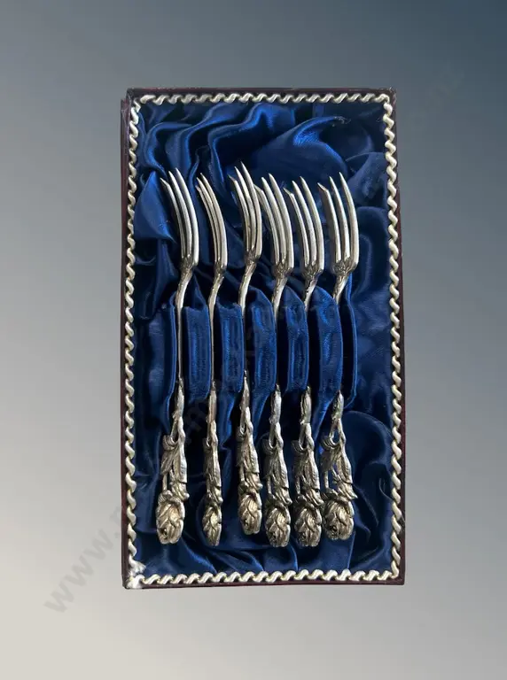 Cased Six Sterling Silver Cake Forks, TW80gms