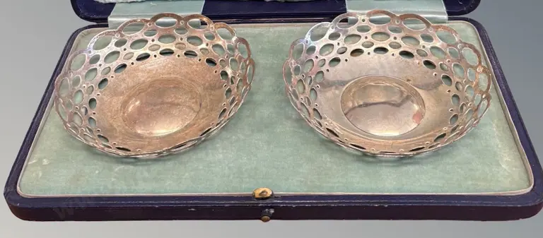 Cased W Drummond & Co glass lined and Silver Dish and Pickle Fork, ST SIL TW35.5gms