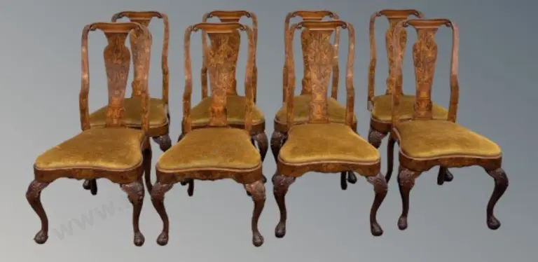 Set of 8 Oak Cottage Chairs with Rush Seats, AF to some seats