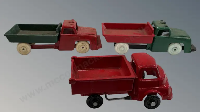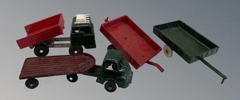 Fun Ho! - Tip Truck, M & B/Fun Ho! Flat Deck Truck & 2 Trailers (repainted)