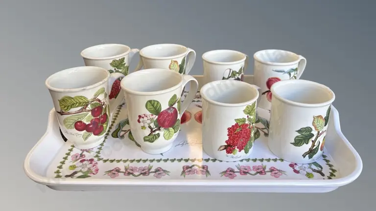 Portmeirion Pomona Mugs - Two Sets of Four and Melamine Tray