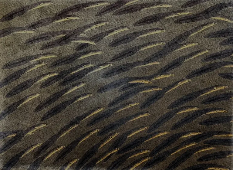 Bing Dawe - Migrating Eels, 1/1 Dilana Rug, 240x175cm