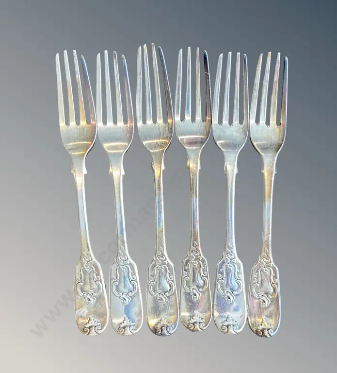 Set of 6 Sterling Silver Fiddleback Pattern Forks, TW302gms