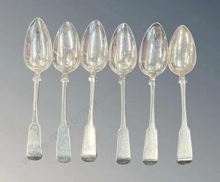 Set of 6 Sterling Silver Fiddleback Teaspoons, TW101gms