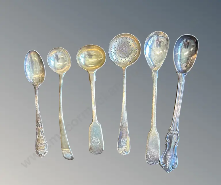 Assorted Sterling Silver Mustard Spoons, Shell Spoons, etc, TW68gms