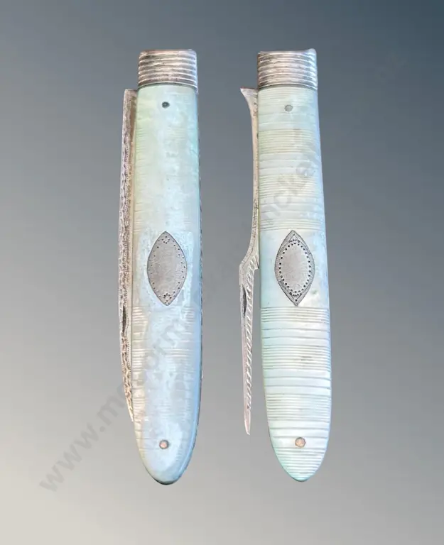 Sterling Silver Blade MOP Handled Knife and Fork, TW40gms
