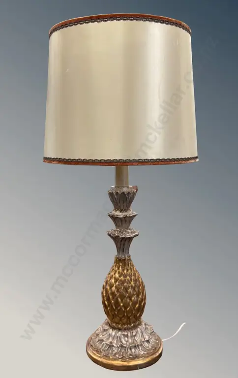 Wooden Gilded Pineapple Based Table Lamp, H100cm with shade