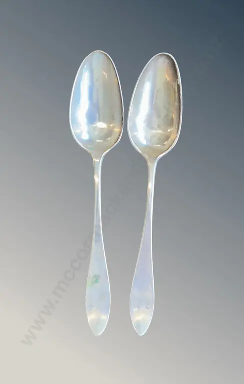 Pair of Sterling Silver Fiddleback Pattern Spoons, TW150gms