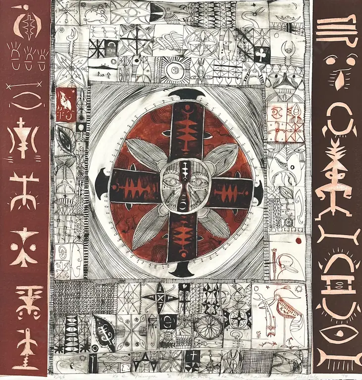 John Pule - Ko e heingoa e Matahiku ha tala au, 27/28 lithograph on paper, 1994, 840x800mm