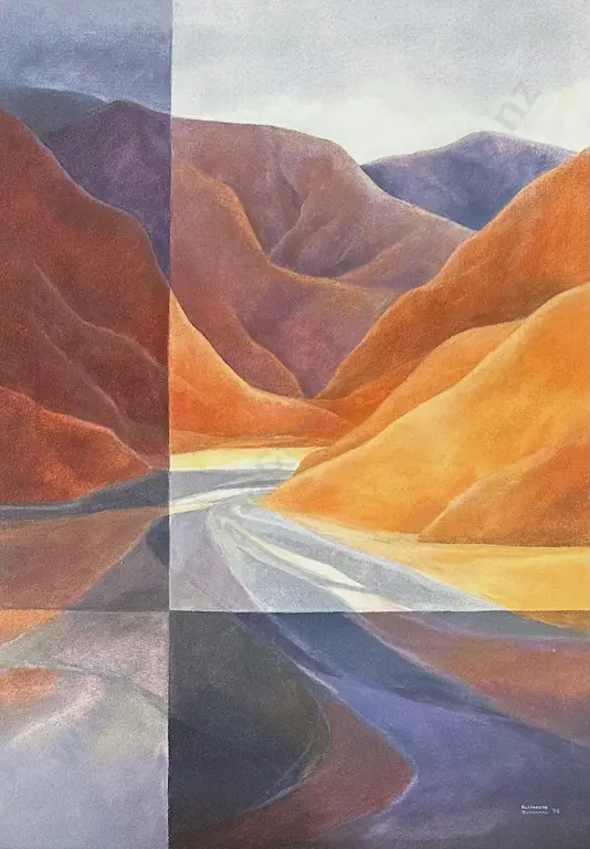Elisabeth Buchanan - Hills and Gorge, oil on board, 1998, 900x690mm