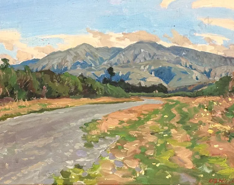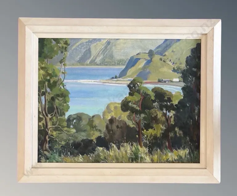 Vera Cummings - Kapai Te Torori, oil on board 460x260mm Estimate: $9,000 - $14,000