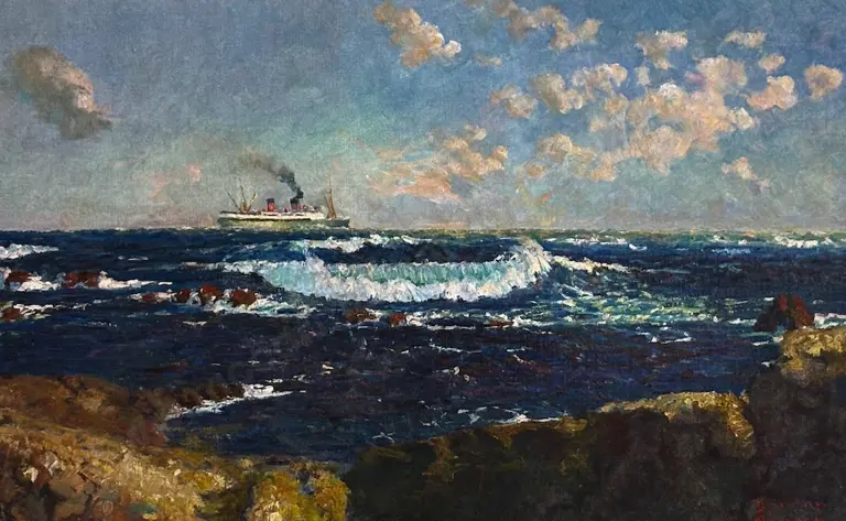 Tom Esplin - Gulf of Genoa, oil on board, 250x445mm Estimate: $3,000 - $5,000