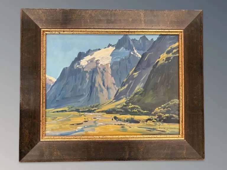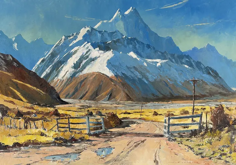 W F Moore - Mount Cook from the Hermitage Road, oil on board, 600x850mm Estimate: $750 - $1,500