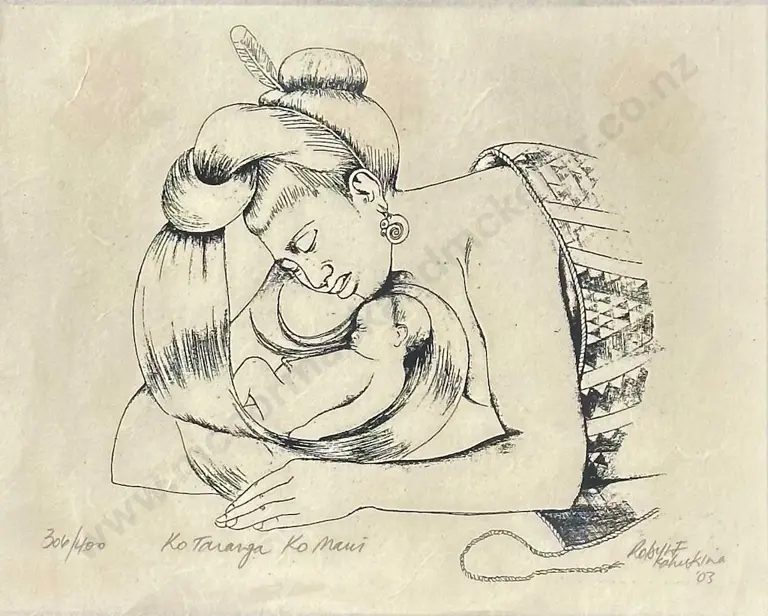 Robyn Kahukiwa - Ko Taranga Ko Maui, 306/400, 2003, work on paper, 300x380mm & The Art of Robyn Kahukiwa Hardcover Estimate: $500 - $1,000